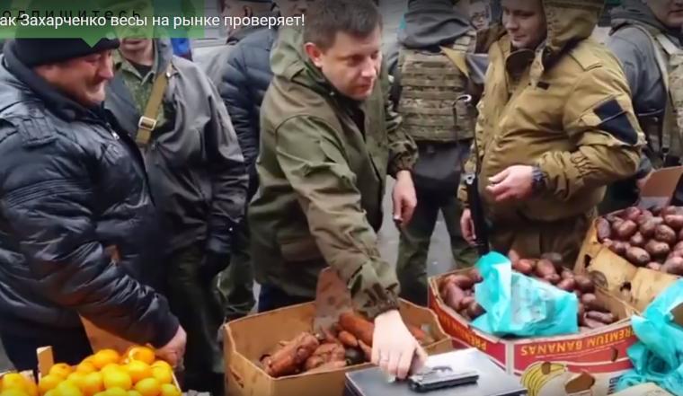 У супроводі озброєної охорони лідер самопроголошеної ДНР Олександр Захарченко відвідав місцевий ринок та перевірив, чи обважують торговці донеччан.