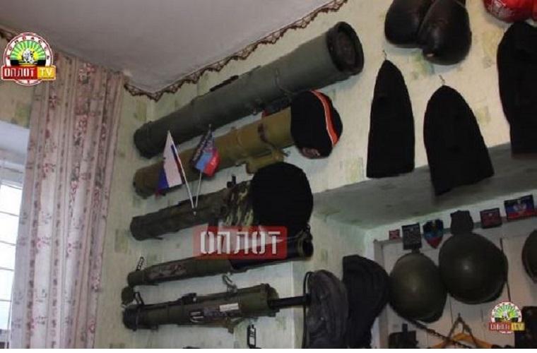 В одній зі шкіл Новоазовська зібрали військову атрибутику бойовиків, яку використовують нібито для військового виховання школярів.