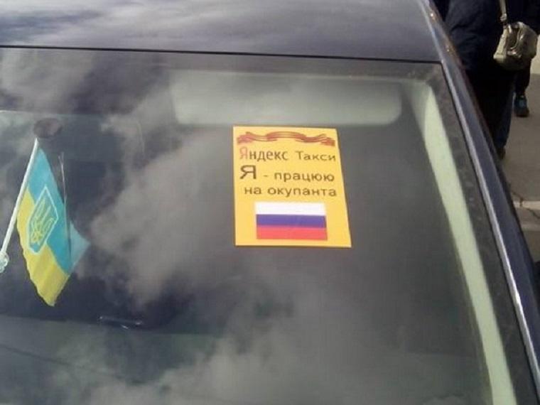Учасники мирної акції ходили містом і клеїли на автомобілі компанії Яндекс.Таксі наліпки з написом Я працюю на окупанта. Крім того, Правий сектор Львівщини на вулицю Наукову викликав близько десятка машин цієї компанії та провів з водіями розмову.