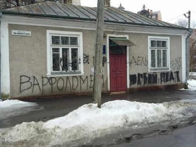 Сьогодні, 27 лютого, в Мережі з’явились фото, на яких видно, що будівлю Рівненської єпархії УПЦ МП розписали непристойними висловами. Про це повідомляє PRESS-ЦЕНТР із посиланням на .