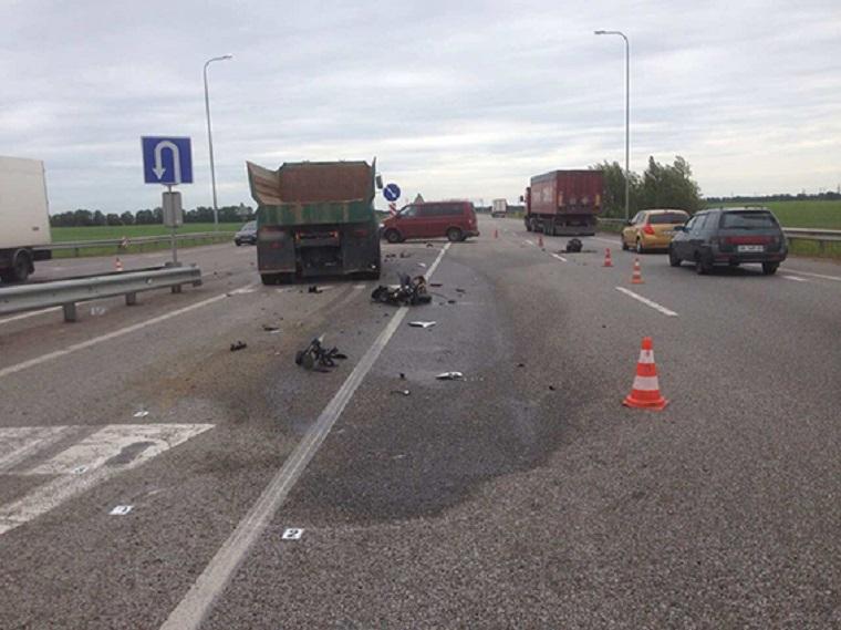 За попередньою інформацією, хмельничанин, будучи за кермом мотоцикла Yаmаhа, біля села Більковець Коростишівського району на Житомирщині зіткнувся із вантажівкою, водій якої виконував маневр розвороту і зупинився у зоні дії відповідного дорожнього знаку на додатковій смузі для гальмування, пропускаючи попутній транспорт.
