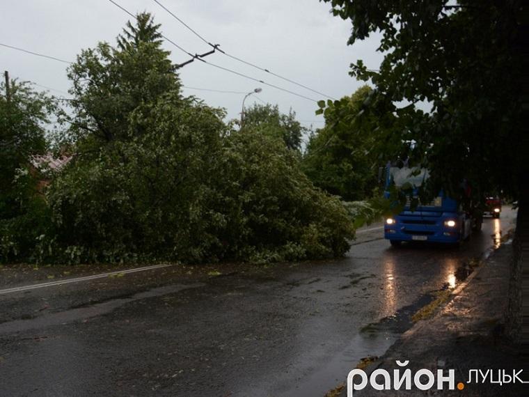 Зокрема, як повідомляє , о 17.00 годині біля перехрестя вулиць Ковельська та Львівська буревій повалив дерева, які перекрили одну зі смуг. Через це автомобільний рух на вулиці ускладнений.