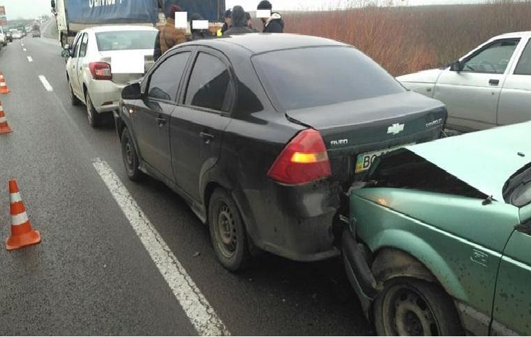 Далі все було за принципом, так званого доміно – Volkswagen Passat за інерцією наздогнав Chevrolet Aveo, той – Renault Logan, який наїхав на Daewoo Lanos.