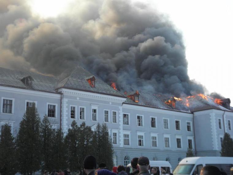 Пожежа в місті Хирів Старосамбірського району на території оздоровчого комплексу Лаяр Палас – колишнього єзуїтського коледжу виникла вчора, 24 березня, о другій годині дня. Проте загасити її вдалося лише сьогодні на світанку.